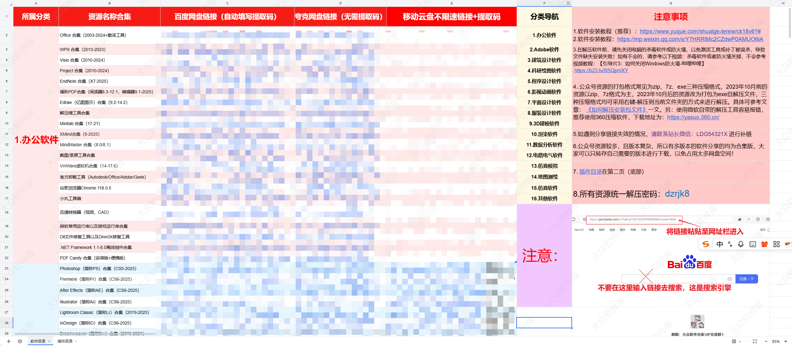 内含目前公众号更新的所有软件资源的百度、夸克以及移动云盘(正在更新)的所有链接。一次购买终身使用!